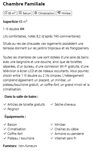 Le LUX SAINT GILLES Chambre Familiale propose également des équipements modernes pour rendre votre séjour encore plus agréable : climatisation, minibar, plateau/bouilloire gratuit, coffre-fort et connexion Wi-Fi gratuite. Un bureau et un grand miroir sont à votre disposition pour travailler ou vous préparer en toute sérénité. Les rideaux occultants assurent un sommeil réparateur, et la télévision à écran LCD permet de profiter de vos programmes préférés depuis le confort de votre chambre.