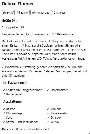 Jedes Deluxe-Zimmer ist mit einem großen Doppelbett ausgestattet, dessen Matratzen und Kissen sorgfältig ausgewählt wurden, um erholsamen Schlaf zu garantieren. Das Feedback unserer Gäste bestätigt einen außergewöhnlichen Komfort, mit einer durchschnittlichen Bewertung von 9,2 von 10, die die Qualität der Betten und die Liebe zum Detail hervorhebt.
